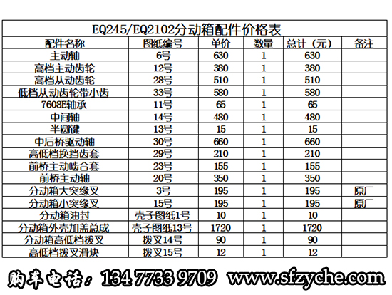東風(fēng)軍車EQ245/EQ2100E/EQ2100E6D六驅(qū)軍車分動箱配件報價表