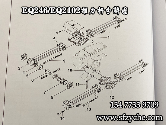 EQ246、EQ2102系列東風(fēng)六驅(qū)平頭軍車推力桿圖片及配件型號(hào):