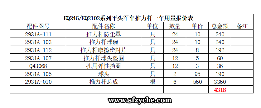 EQ246/EQ2102軍車推力桿修理包配件價(jià)格表