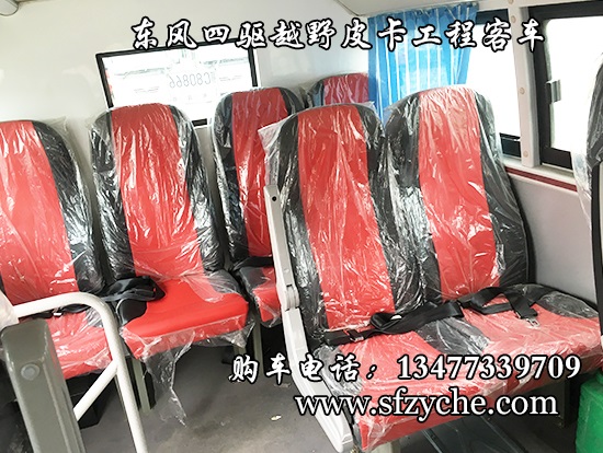 6.鋁花紋地板,中檔皮革座椅5-9個,整車座椅3點式安全帶,手動式外擺門,正副司機門,選裝東風原廠派恩頂置空調