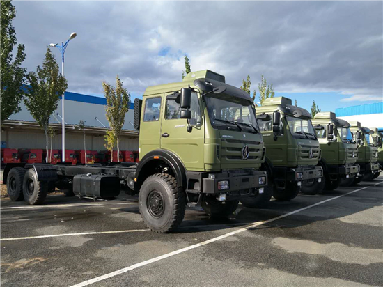 北奔7噸級(jí)4×4車型1926A軍用越野車和北奔10噸級(jí)6×6型2629A軍用越野車。