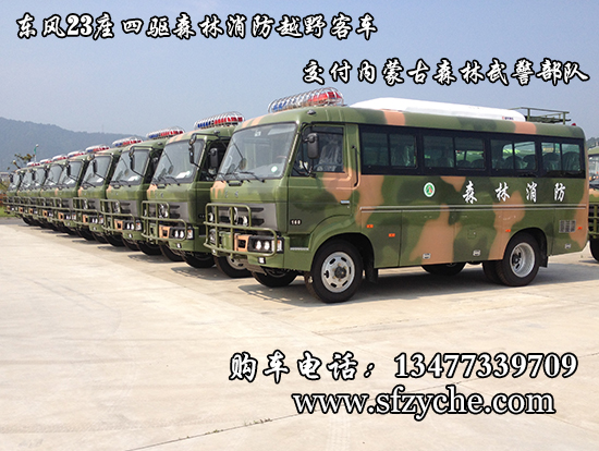東風(fēng)23座四驅(qū)森林消防專用運(yùn)兵車型號(hào)為EQ6680ZTV,采用軍工東風(fēng)EQ6650KZ5T 三類底盤,發(fā)動(dòng)機(jī)型號(hào):ISD160 50康明斯160馬力國五排放,變速箱為手動(dòng)六檔變速箱,整車外形尺寸長寬高(6800X2320X2800,3010)mm 驅(qū)動(dòng)形式:4×4,離合助力,方向助力,斷氣剎,鼓式自動(dòng),車橋?yàn)闁|風(fēng)德納,輪胎為7.50R20鋼絲胎,外行李架,工具箱3個(gè),前置防裝杠,粘接式推拉玻璃,鋁花紋地板,中檔座椅,,手動(dòng)式外擺門,153駕駛室正副司機(jī)門,獨(dú)立柴油鍋爐暖風(fēng)機(jī)帶四個(gè)出風(fēng)口,窗簾,滅火器兩個(gè),備胎一個(gè)。選裝頂置派恩大功率空調(diào)機(jī)組。