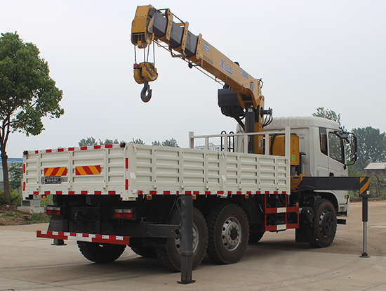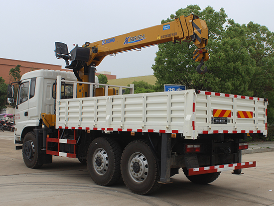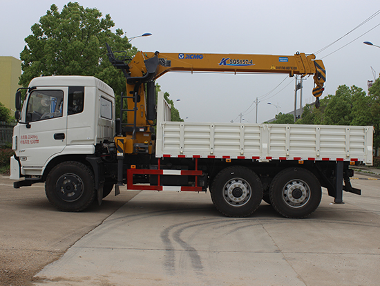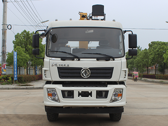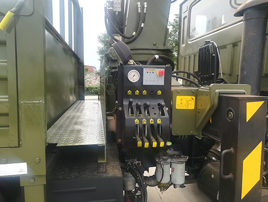 采用徐工5噸折臂式隨車吊,SQZ105型徐工原廠吊機(jī),最大起重質(zhì)量5噸,三節(jié)臂,舉升高度11米,工作半徑8米,全液壓,全回轉(zhuǎn),車廂尺寸4.25米,遠(yuǎn)程油門控制,下操作。