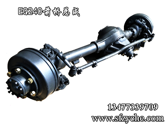 東風EQ240尖頭六驅軍車前橋圖紙,EQ240、EQ2081E、EQ2061E、EQ2082E6D、EQ1093等車型均采用東風德納2.8噸級前橋,前橋裝有三肖式等速萬向節(jié),主減速器速比6:35和6:37兩種,老款汽油車型都是6:37齒盆角齒;后期柴油車采用6:35齒盆角齒,輪胎螺絲6孔。下面詳細提供整根車橋細節(jié)圖紙: