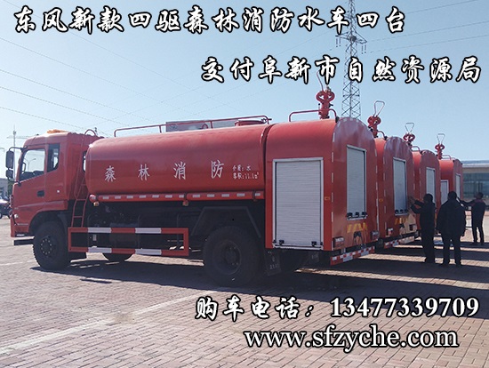 遼寧省阜新市自然資源局下屬的林業(yè)和草原局森林防火辦公室采購(gòu)的東風(fēng)新款四驅(qū)森林消防水罐車具體參數(shù):東風(fēng)四驅(qū)越野森林消防水罐車_東風(fēng)11.1噸四驅(qū)消防水車_國(guó)五四驅(qū)越野森林滅火水車_東風(fēng)4×4越野SCS5183GPSEQ型四驅(qū)綠化噴灑車簡(jiǎn)介:采用東風(fēng)EQ2180GD5DJ型越野汽車底盤(pán),東風(fēng)153寬體駕駛室(選裝D913新款駕駛室),4×4驅(qū)動(dòng),康明斯ISB190 50國(guó)五發(fā)動(dòng)機(jī),六檔變速箱,東風(fēng)商用車橋,前驅(qū)動(dòng)橋3.8噸,后橋10噸,10.00R20輪胎,軸距4500mm,電動(dòng)玻璃,方向助力,斷氣剎,ABS。罐體采用優(yōu)質(zhì)碳鋼Q235板材,板材厚度4mm,罐體容積11.1立方,安裝夾心取力器,后置泵箱,消防栓接口左右各一個(gè),消防炮采用PS30-50D消防水炮,流量40L/S/1.0MPa 水射程:≥50m,消防泵采用常壓消防泵型號(hào):CB10/40車用消防泵,流量:40L/s,壓力:1.0MPa,駕駛室頂部安裝長(zhǎng)條警燈帶喊話器,全車顏色橘紅,兩側(cè)噴涂白色森林消防字樣。