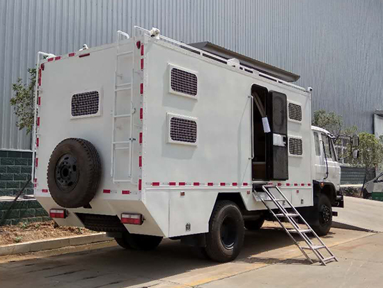 東風(fēng)大型四驅(qū)越野房車滿足更多路況復(fù)雜環(huán)境使用,廂體內(nèi)裝有豪華折疊床、液晶電視、儲(chǔ)物柜、應(yīng)急燈、頂燈、頂置空調(diào)、床墊、被褥、燃油加熱器、頂護(hù)欄、爬梯、隱藏抽拉梯、專用房車門、中空玻璃、戶外燈。由保溫廂體、空氣調(diào)節(jié)系統(tǒng)、宿營(yíng)設(shè)施、影音系統(tǒng)、電氣系統(tǒng)、通風(fēng)換氣系統(tǒng)、洗漱和衛(wèi)生設(shè)施。整個(gè)廂體分為三個(gè)部分,住宿區(qū)、洗漱區(qū)、餐飲區(qū)。住宿區(qū)包括四個(gè)上下鋪,床頭燈,液晶電視,空調(diào)等。洗浴區(qū)包括臉臺(tái),衛(wèi)生間,熱水器等。餐飲區(qū)包括無煙灶臺(tái),可活動(dòng)餐桌,洗菜盆等。也可以根據(jù)用戶的需要設(shè)計(jì),可增加會(huì)議室,辦公區(qū)等。東風(fēng)大型四驅(qū)越野房車內(nèi)飾圖片: