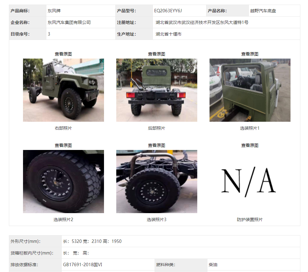 簡介:東風(fēng)猛士民用版EQ2063EYY6J型四驅(qū)越野汽車底盤在340批次公告中公示成功